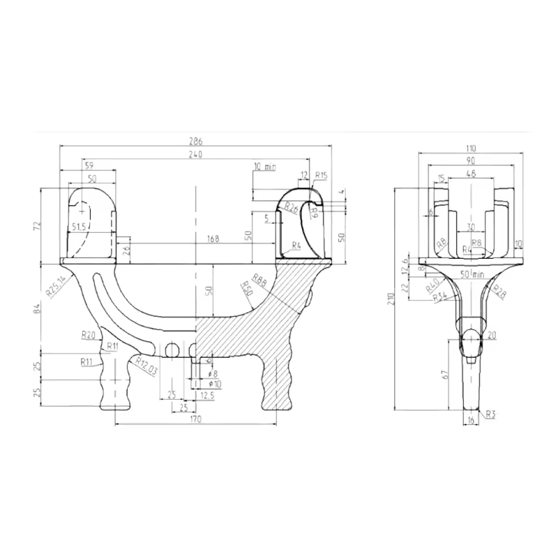 Rail shoulder is cast in the concrete rail ties to fix the elastic rail clips. There are two types of rail shoulders available, the cast-in shoulder and the weld-on rail shoulder, both of which are used for the fixing of elastic rail clips.
